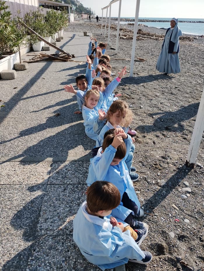 Il salone vene utilizzato anche per i giochi di psicomotricità con attrezzature apposite (tappeti, coni, cerchi, birilli, etc) per poter stimolare il loro sè corporeo e dello spazio, sperimentando ed interagendo con i compagni.