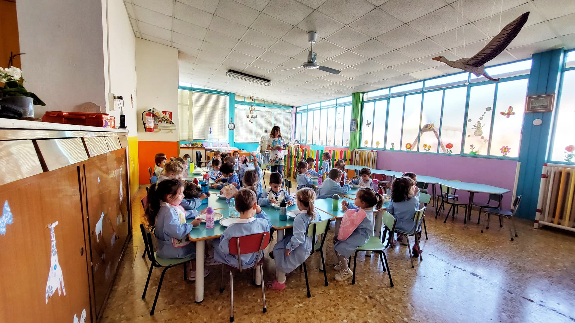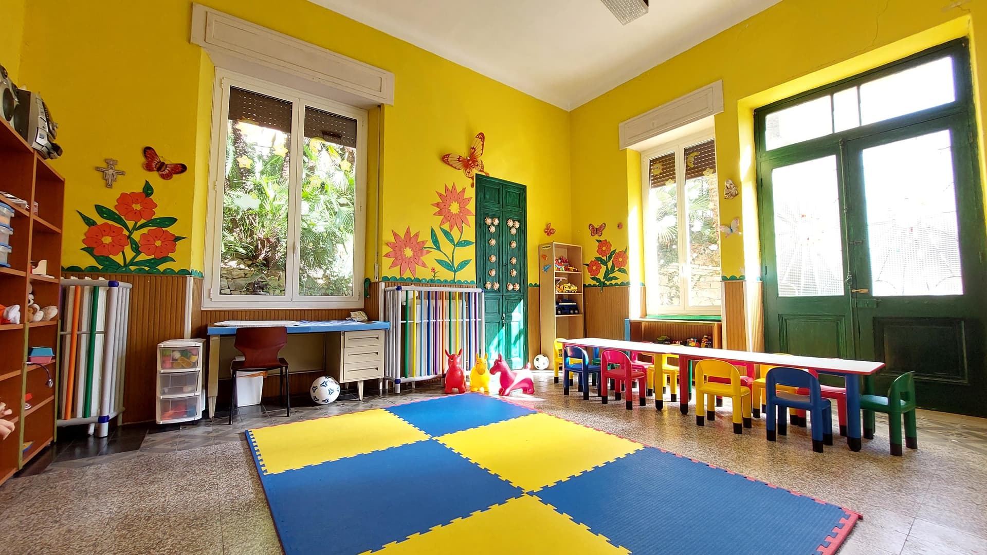 L'aula è ampia e ben illuminata, ospita bambini dai 3 ai 5 anni ed è suddivisa in due parti: